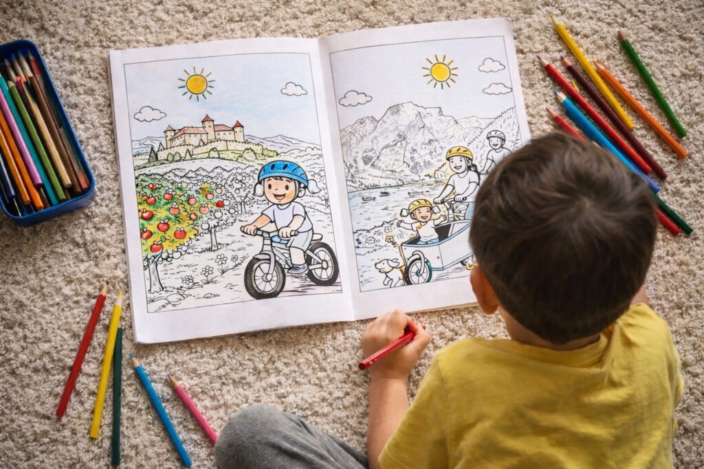 Ho deciso di inserire In Bicicletta in Trentino Alto Adige su Edituo perché mi sembra un buon esempio di libro da colorare che non è solo “riempi gli spazi e via”, ma apre uno spiraglio su un territorio preciso, con cui molte famiglie hanno un legame affettivo.